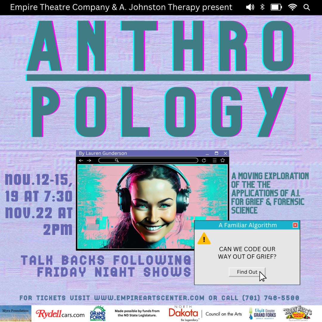 *The research & writing of this play was supported in part by an American Recovery Grant through the National Endowment for the Arts, through the ND Council on the Arts, and an Individual Artist Fellowship from the ND Council on the Arts